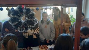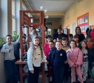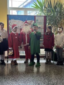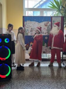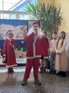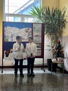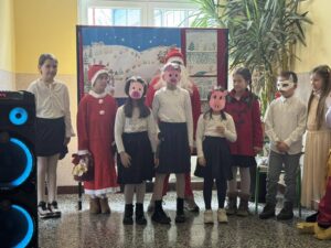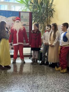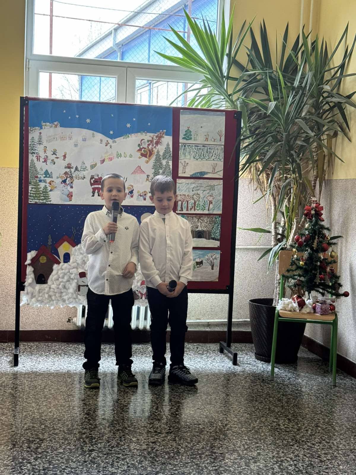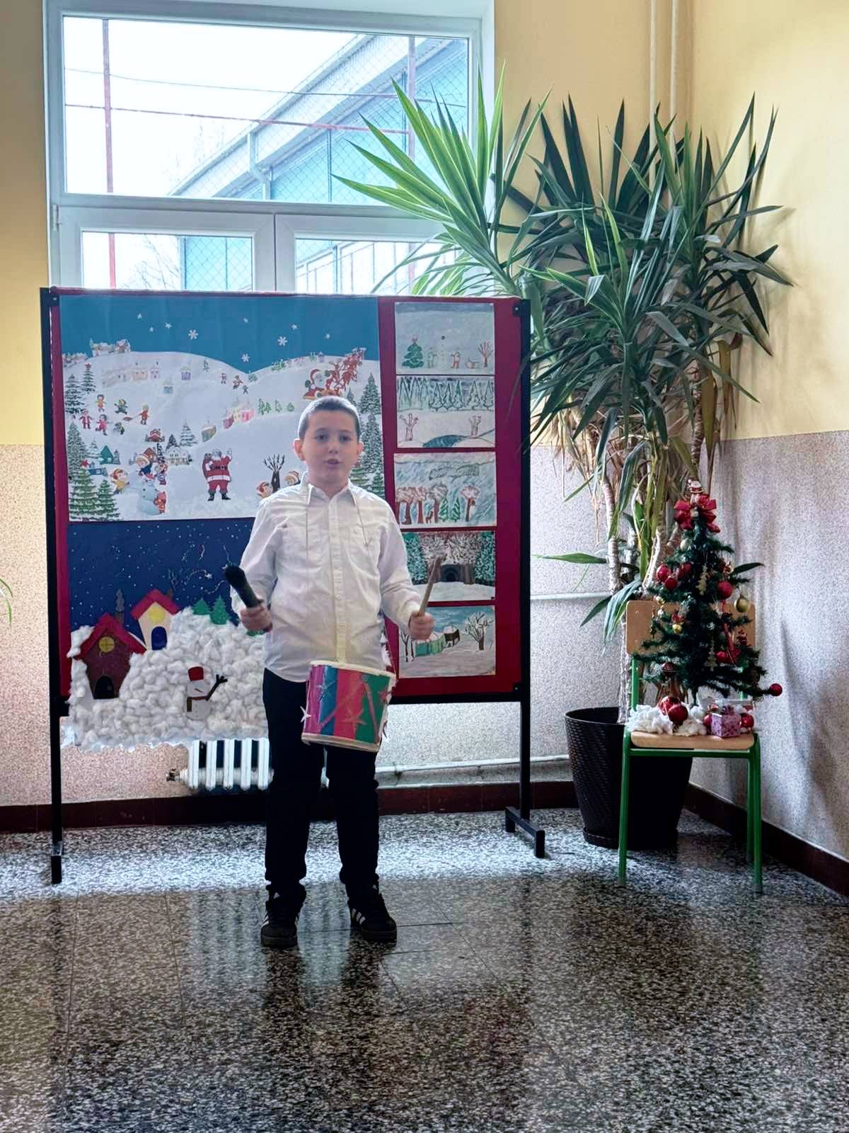 новогодишња приредба. Ученици су припремили представу Новогодишња потрага, која говори о несебичном одрицању, опраштању и пријатељству, праћена музиком из познатих класичних дела Игра шећерне виле, Крцко Орашчић и Лабудово језеро. Гости су били другари из вртића.