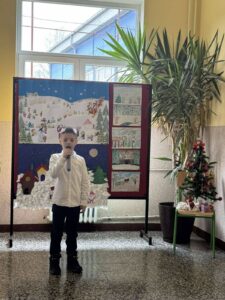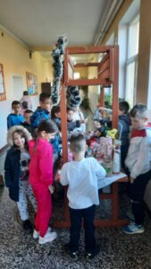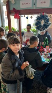 Ученици млађих разреда су традиционално организовали Новогодишњи базар и приредбу. На базару су показали своја креативна умећа представљајући нам разне наките за јелку, честитке, украсне сувенире за столове и врата, ручне радове… Били су одушевљени у улогама купаца и продаваца на нашем шареноликом штанду.
