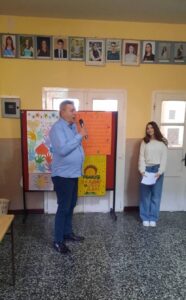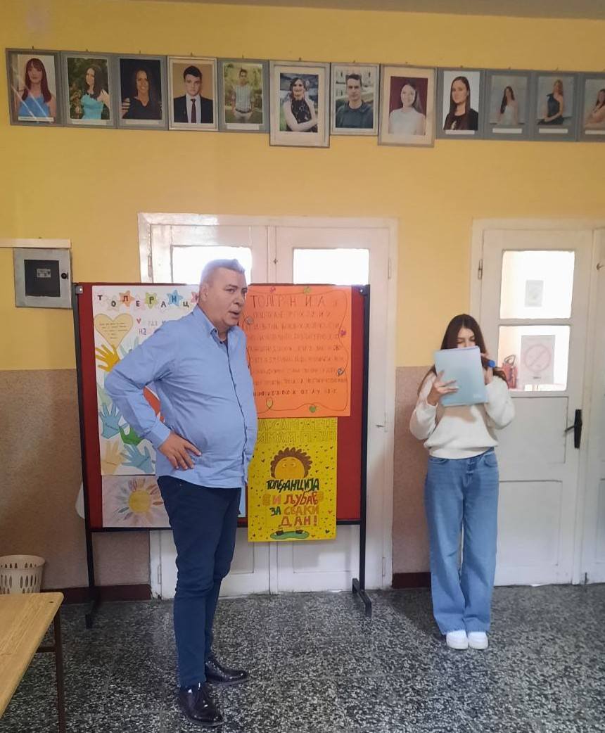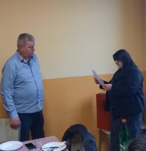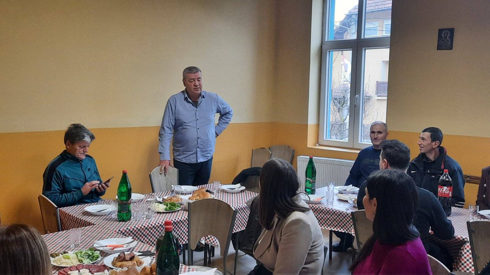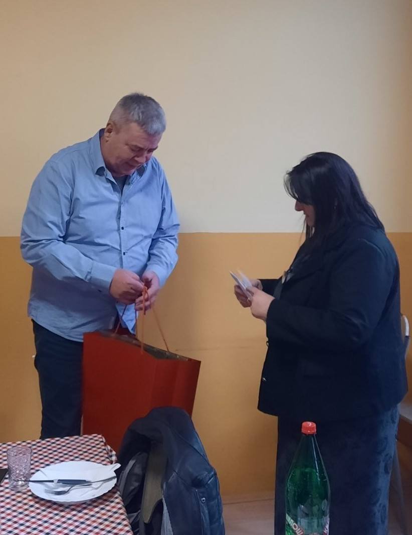 Најпре се директору обратила ученица Ивана Петронијевић, као представник Ученичког парламента, а потом је за време ручка говор одржала учитељица Јела Дуканац, која је дугогодишњем директору уручила поклон у име свих запослених и пожелела му све најбоље у пензионерским данима који следе.