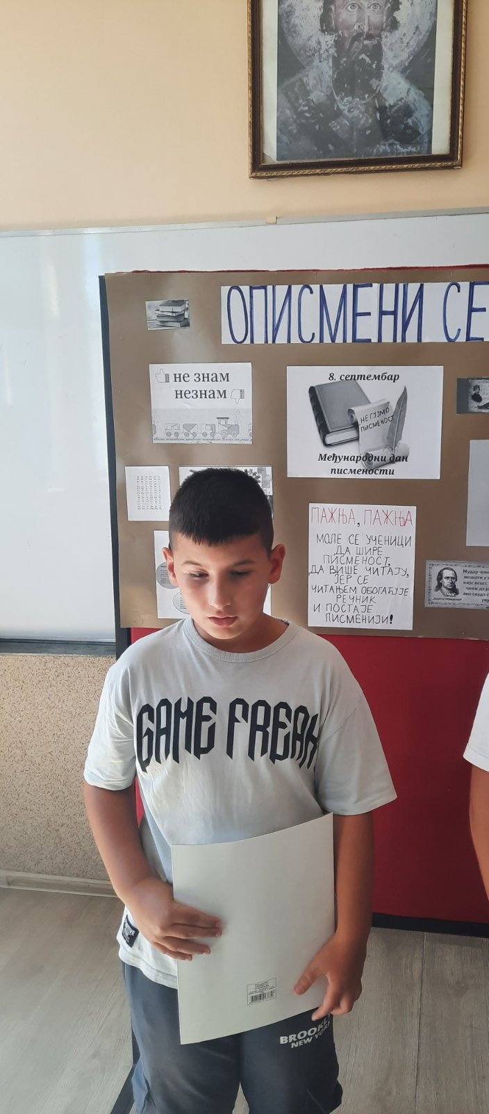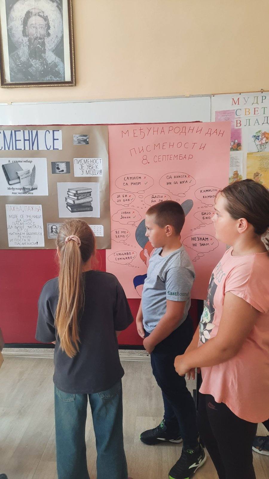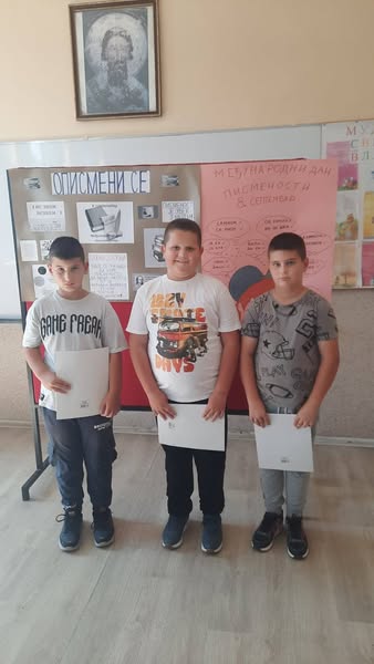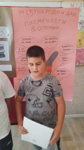 У уводном делу часа ученици петог разреда су говорили о значају писмености. Подсетили смо се развоја словенске писмености и просветитељског рада Ћирила и Методија.