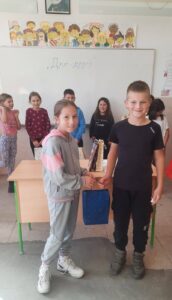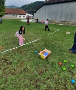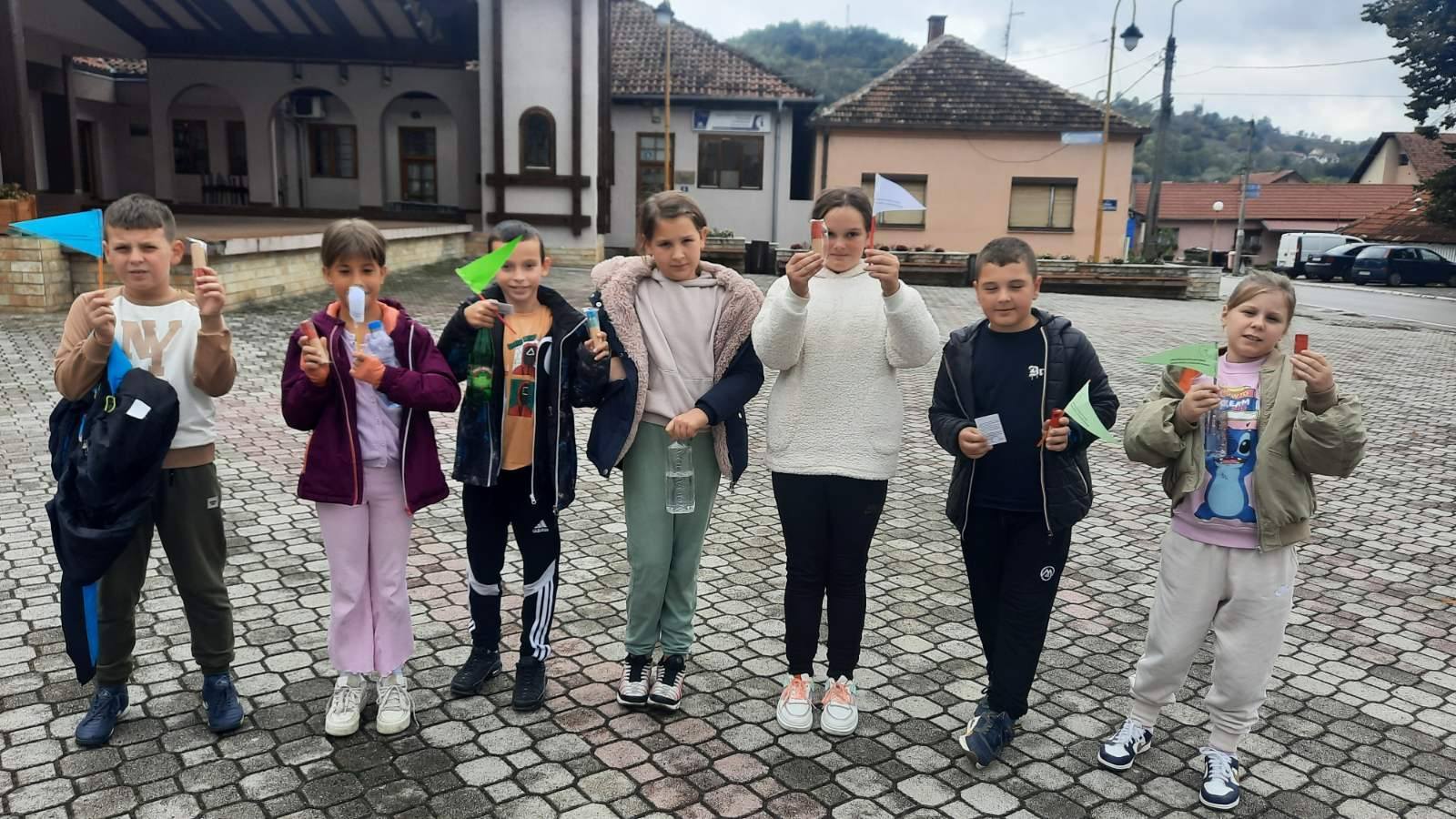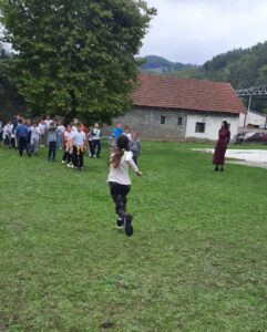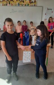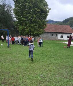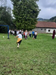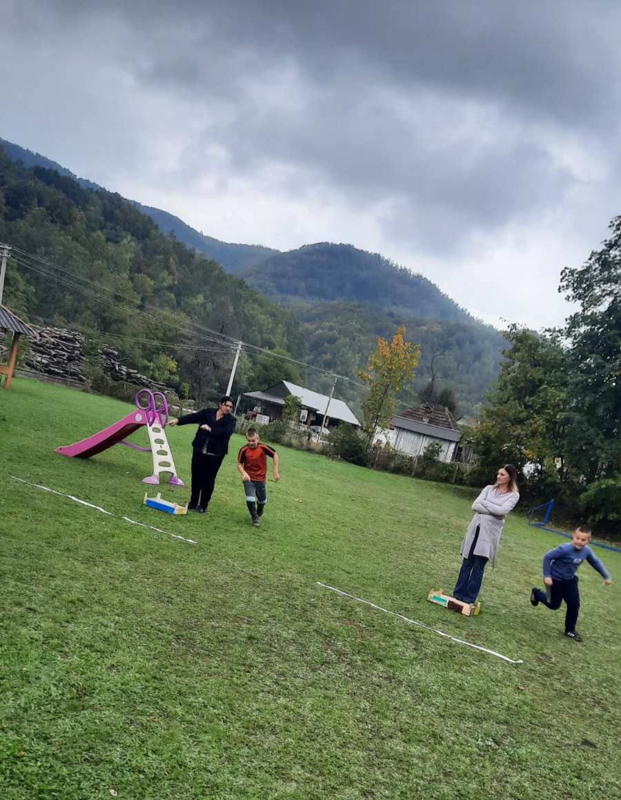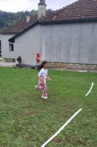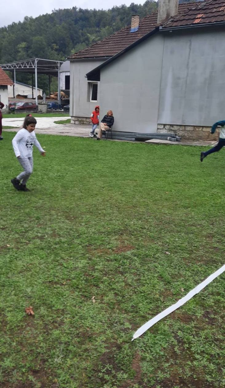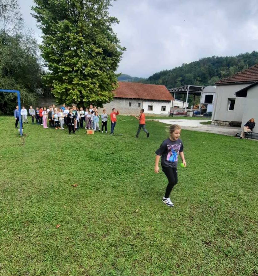 Након креативног рада, ученици су у школском дворишту имали спортске активности. Подељени у две екипе, такмичили су се у трчању, прелажењу препрека и убацивању лоптица у кутије. Затим су дечаци играли фудбал, а девојчице су кредама у боји цртале мотиве по жељи и тако украсиле тротоар испред школе.