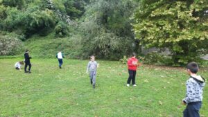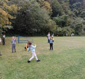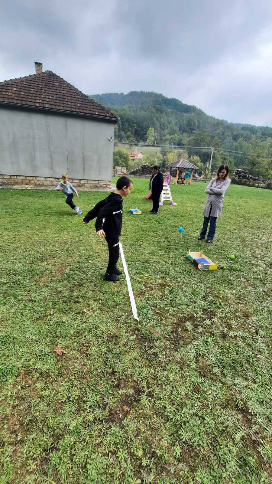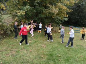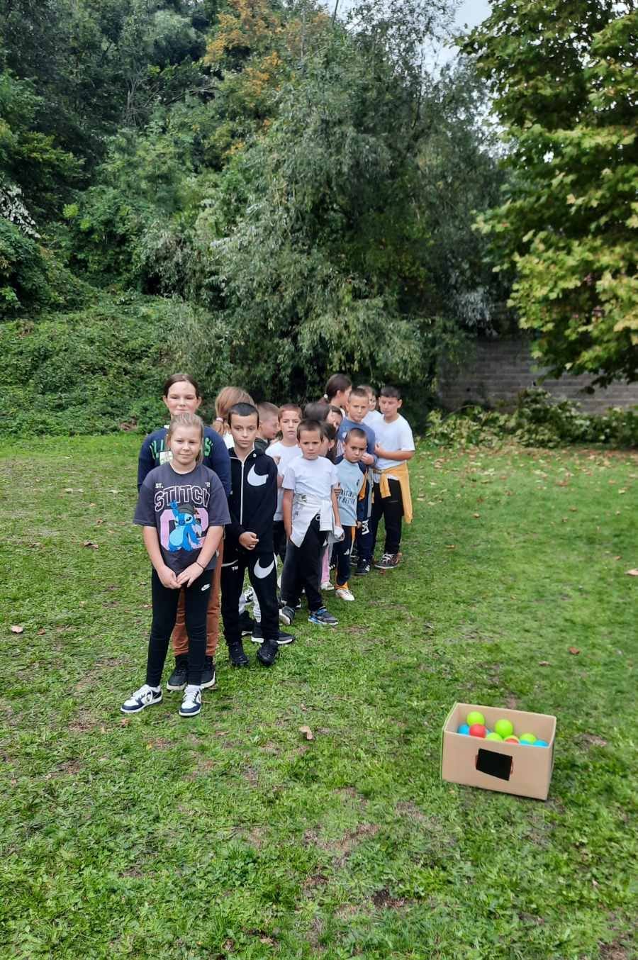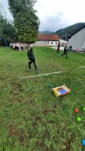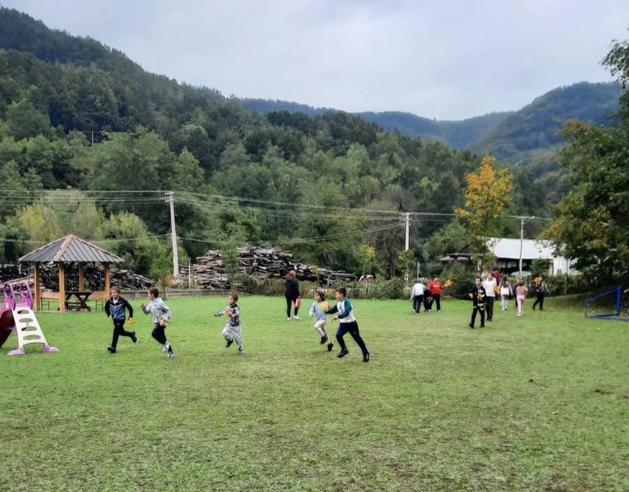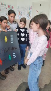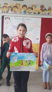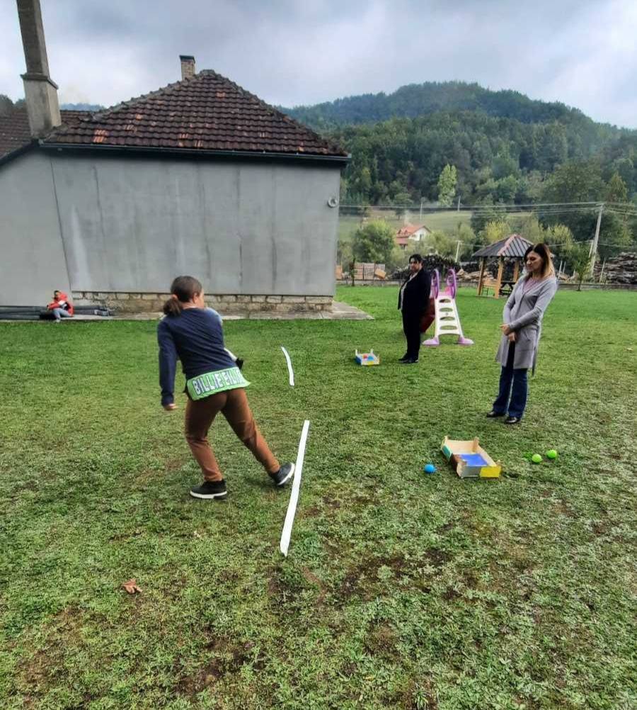Након креативног рада, ученици су у школском дворишту имали спортске активности. Подељени у две екипе, такмичили су се у трчању, прелажењу препрека и убацивању лоптица у кутије. Затим су дечаци играли фудбал, а девојчице су кредама у боји цртале мотиве по жељи и тако украсиле тротоар испред школе.