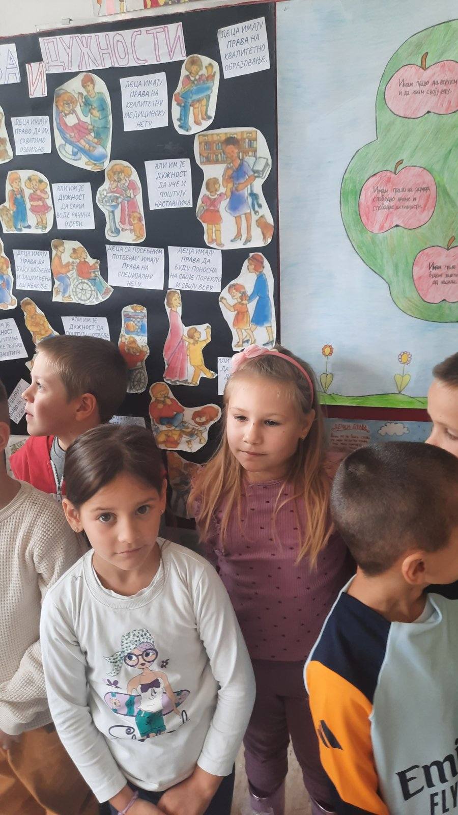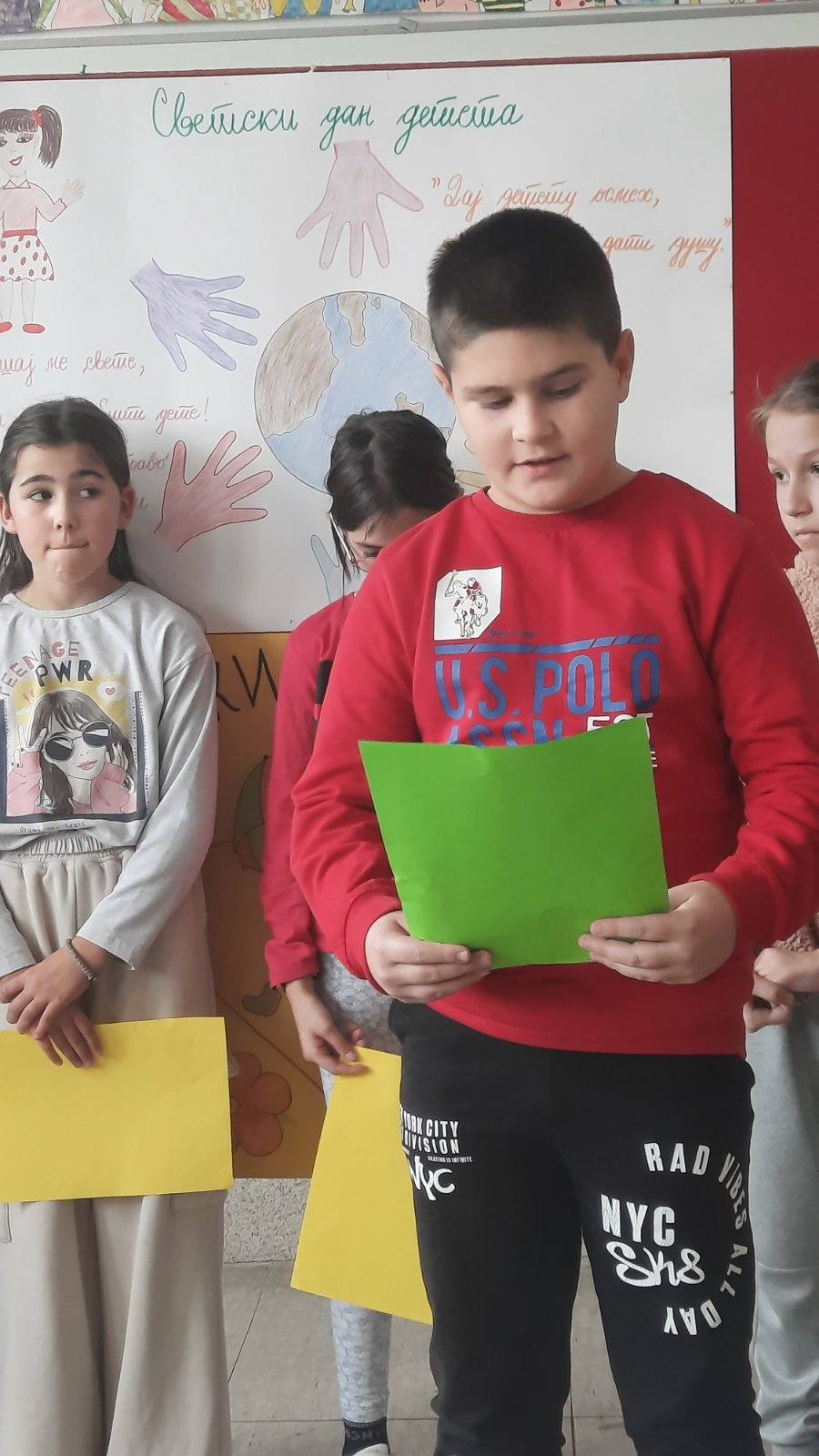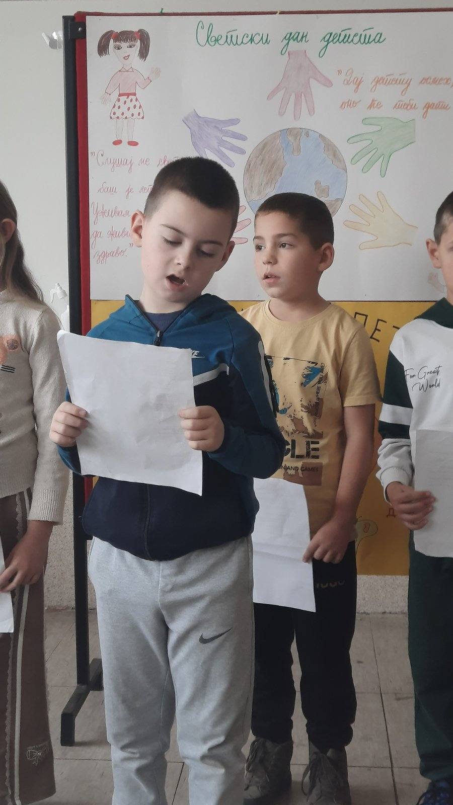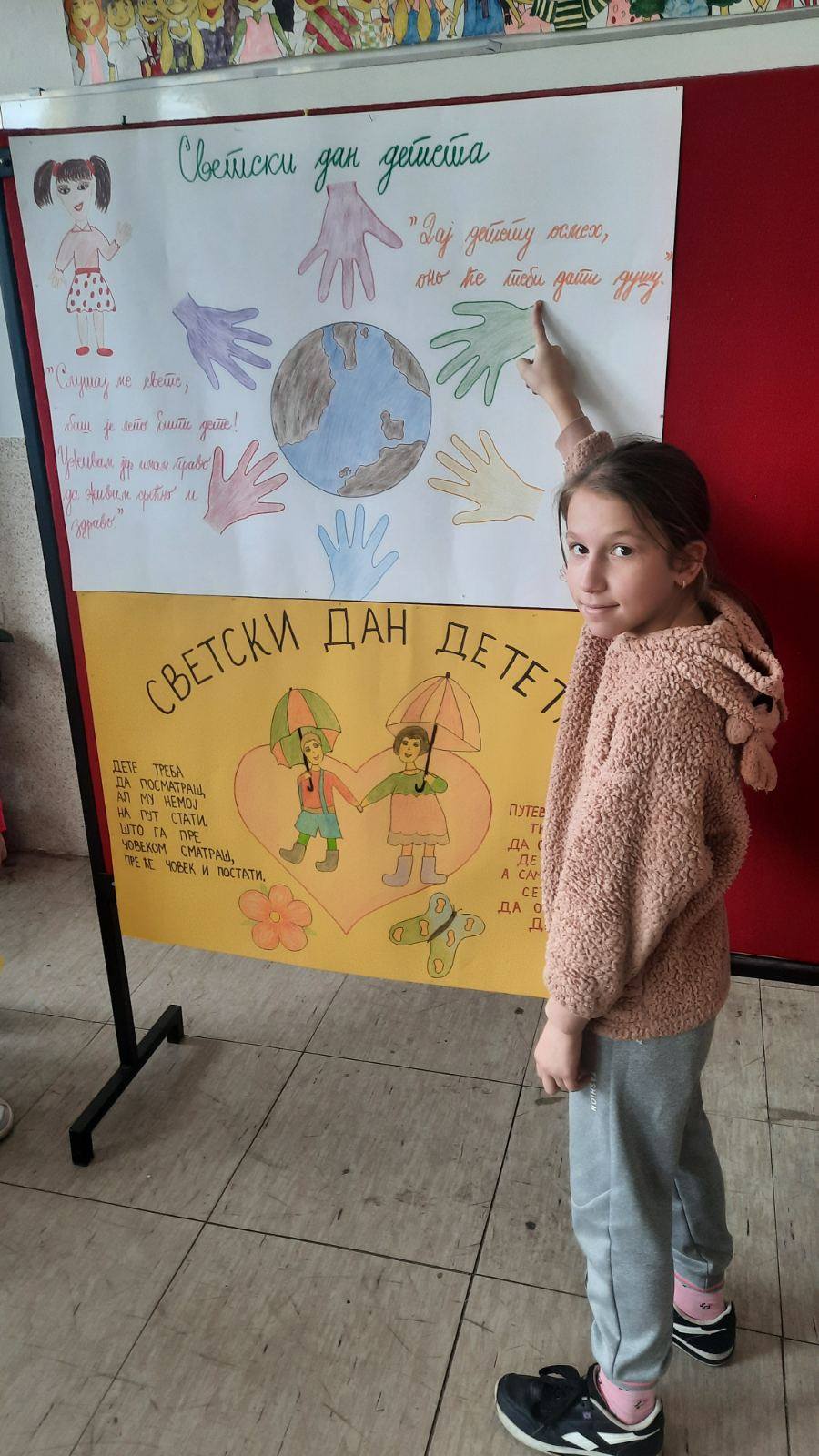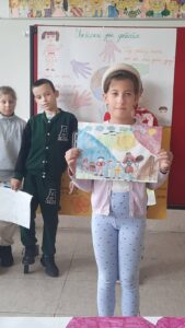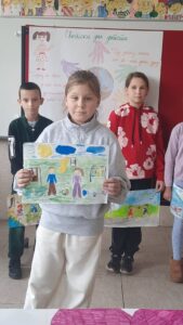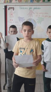 Четвртаци су нас подсетили на важност обележавања Дечје недеље, неговање другарства, љубави, уважавања уз што више смеха и радости. Не можемо да се не подсетимо дечјих права, а да не истакнемо да свако право прати обавеза о чему су нам говорили трећаци уз илустрацију на хамеру. Другаци су нас оплеменили стиховима о деци и њиховим маштаријама, другарству и игри. Прваци су цртежима показали како они замишљају лепши свет својом маштом.
