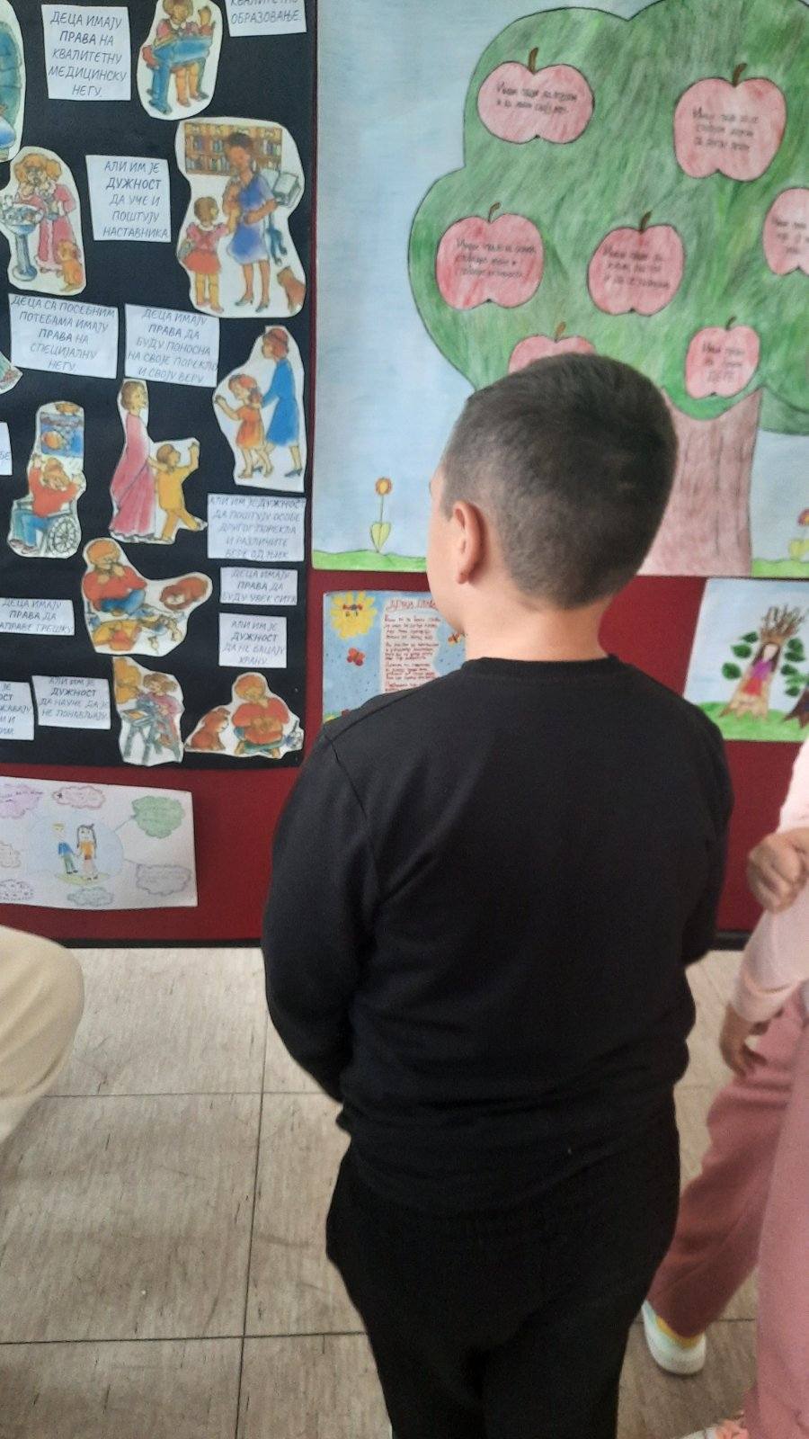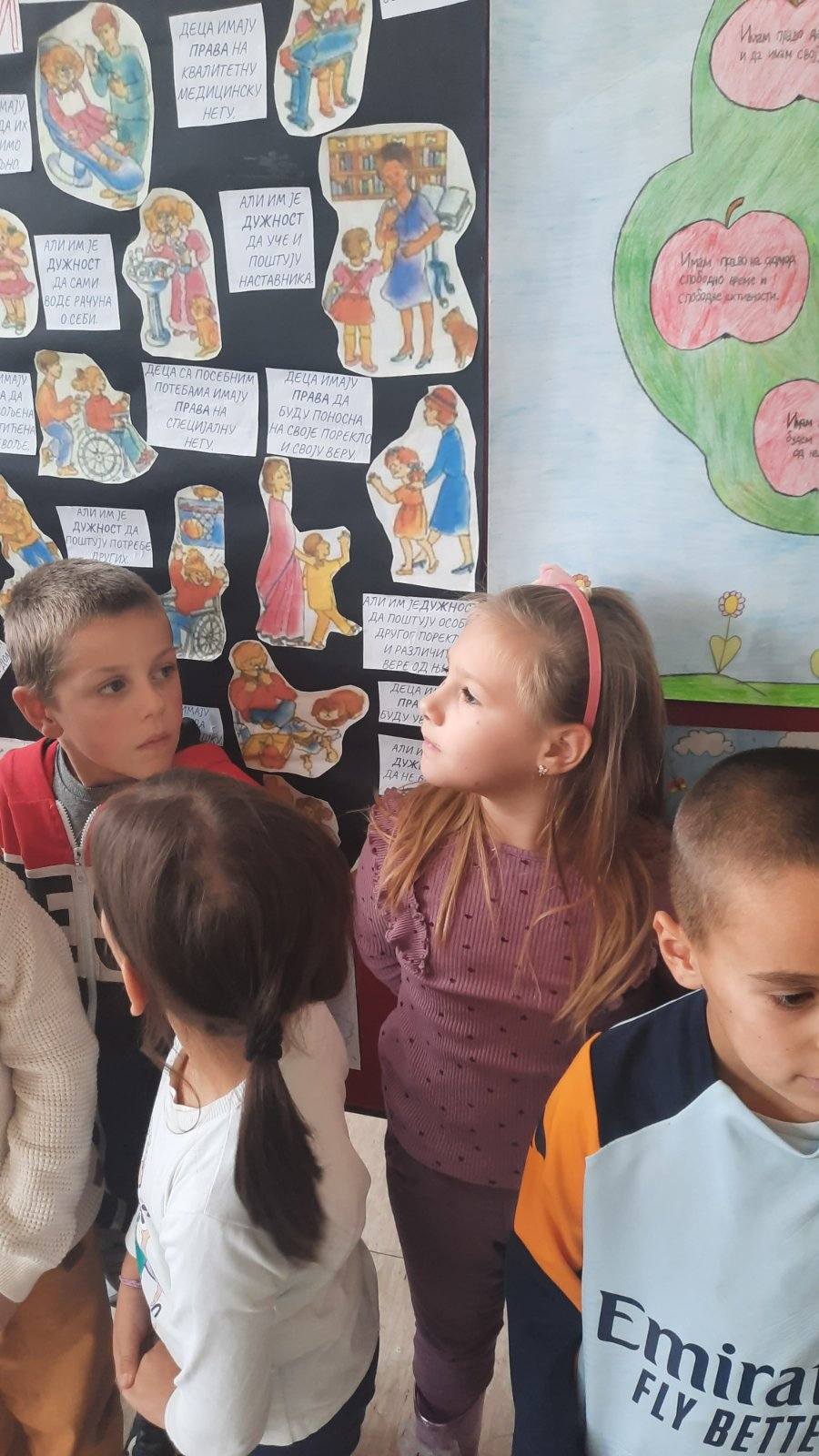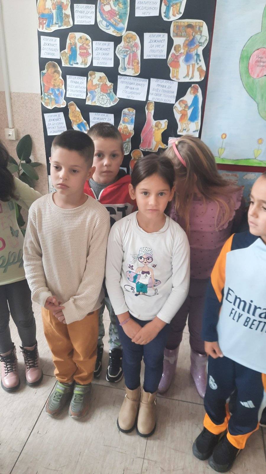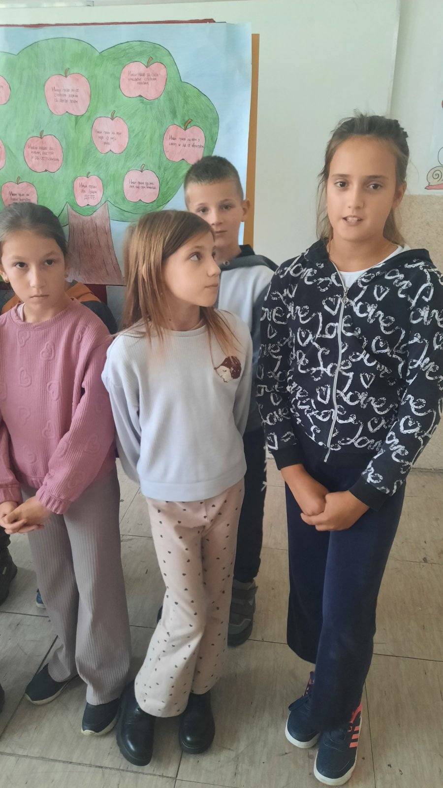 Четвртаци су нас подсетили на важност обележавања Дечје недеље, неговање другарства, љубави, уважавања уз што више смеха и радости. Не можемо да се не подсетимо дечјих права, а да не истакнемо да свако право прати обавеза о чему су нам говорили трећаци уз илустрацију на хамеру. Другаци су нас оплеменили стиховима о деци и њиховим маштаријама, другарству и игри. Прваци су цртежима показали како они замишљају лепши свет својом маштом.