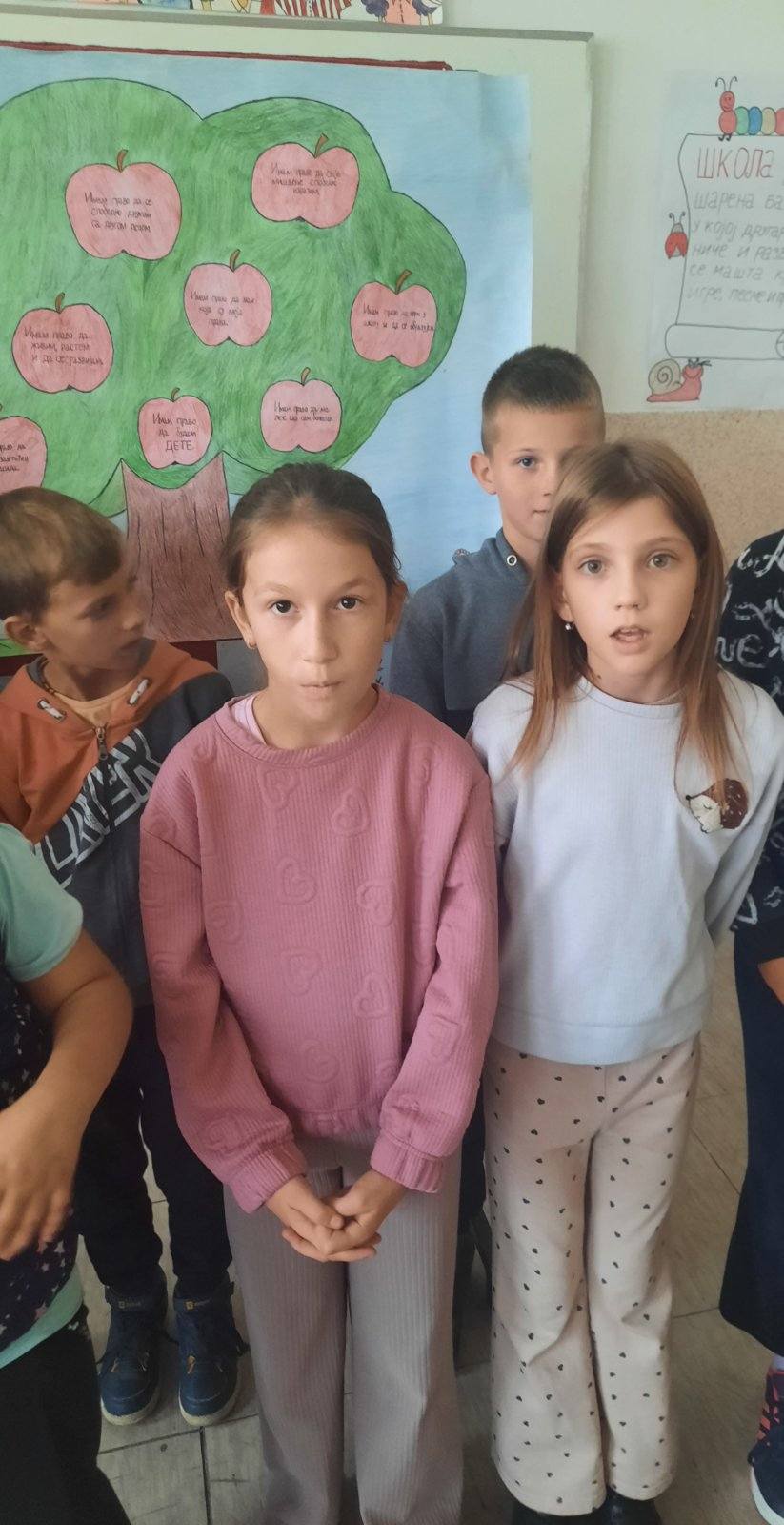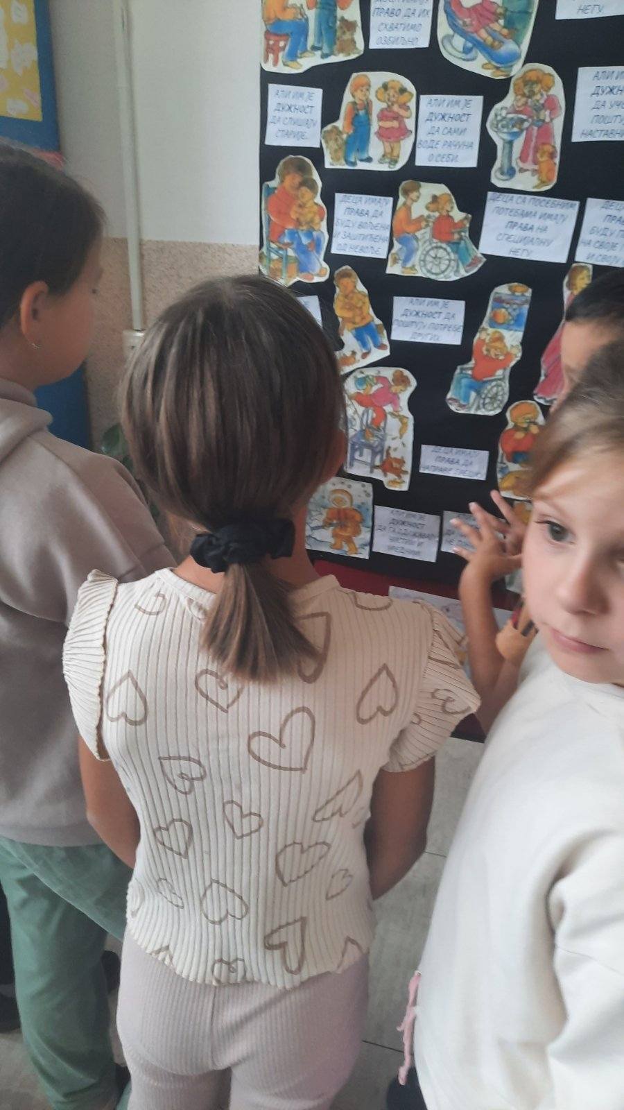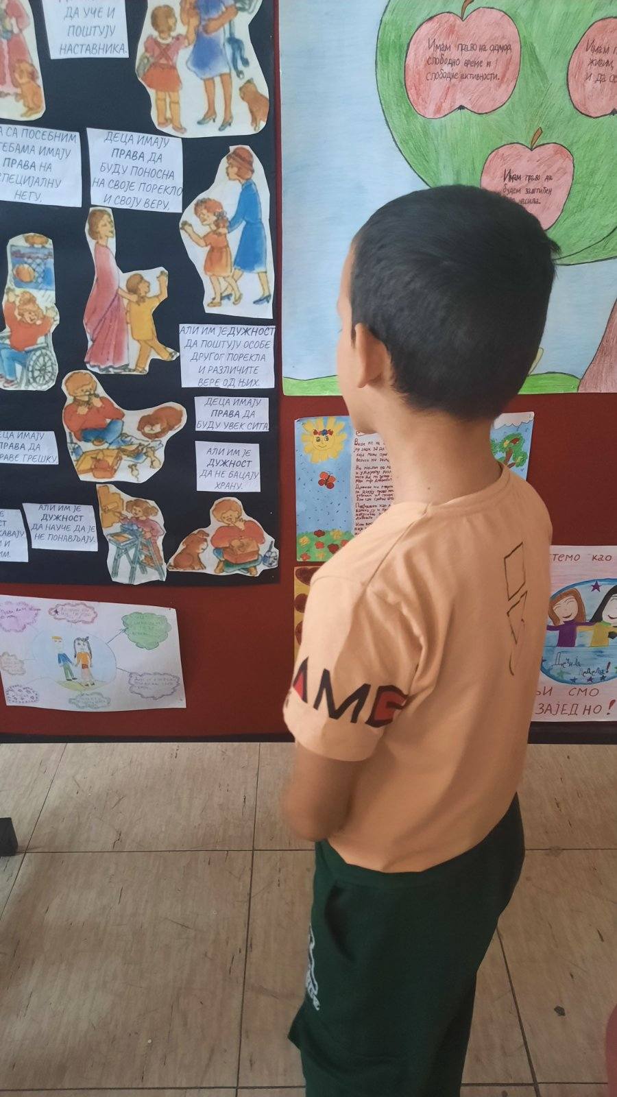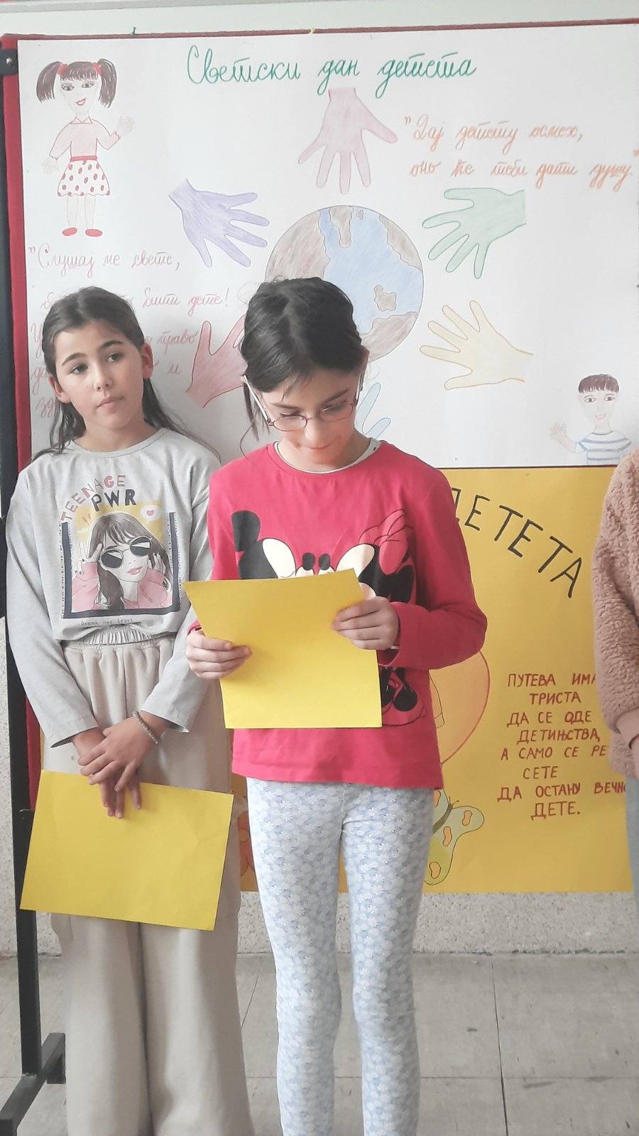 Четвртаци су нас подсетили на важност обележавања Дечје недеље, неговање другарства, љубави, уважавања уз што више смеха и радости. Не можемо да се не подсетимо дечјих права, а да не истакнемо да свако право прати обавеза о чему су нам говорили трећаци уз илустрацију на хамеру. Другаци су нас оплеменили стиховима о деци и њиховим маштаријама, другарству и игри. Прваци су цртежима показали како они замишљају лепши свет својом маштом.