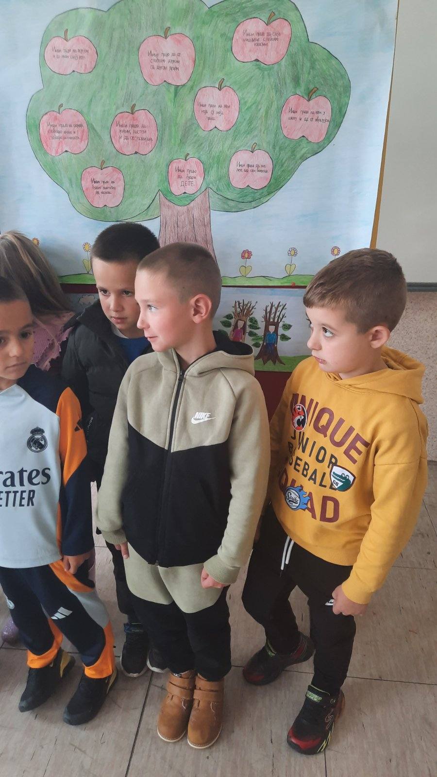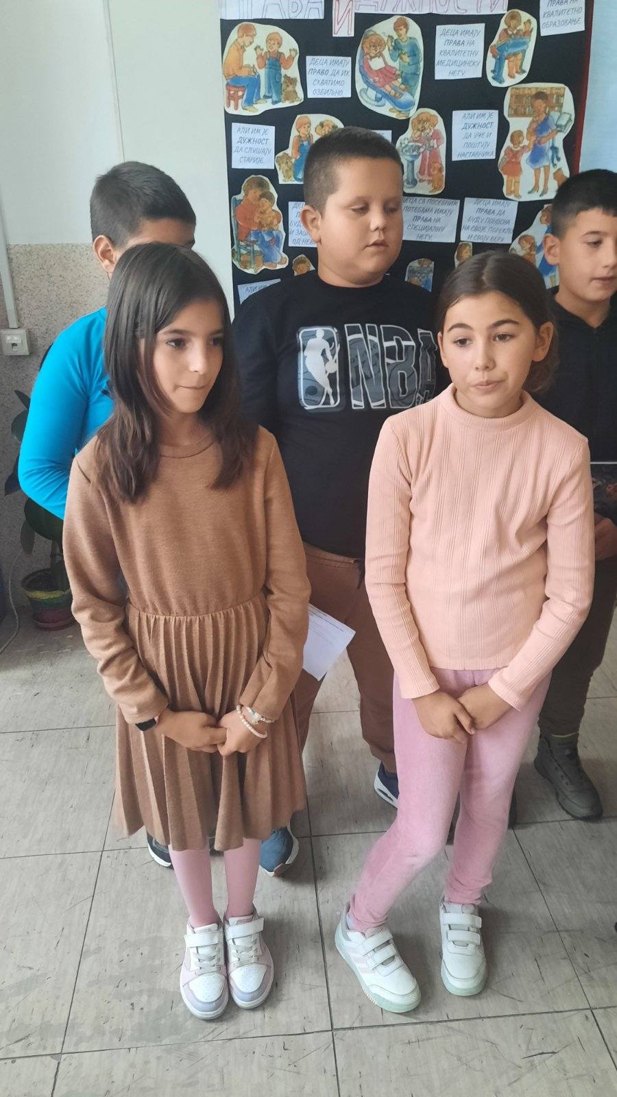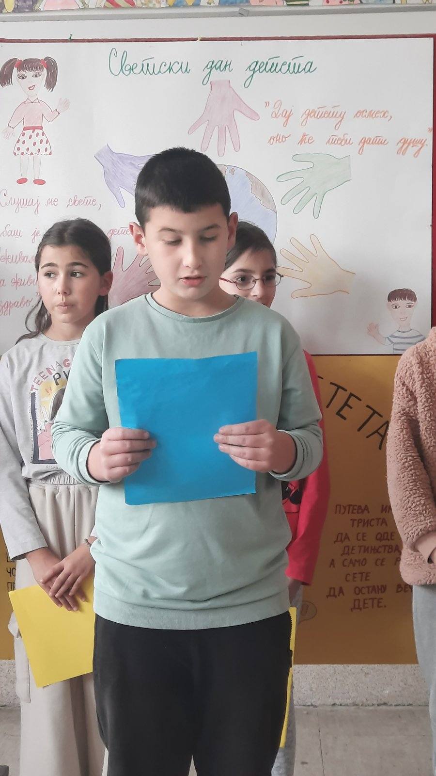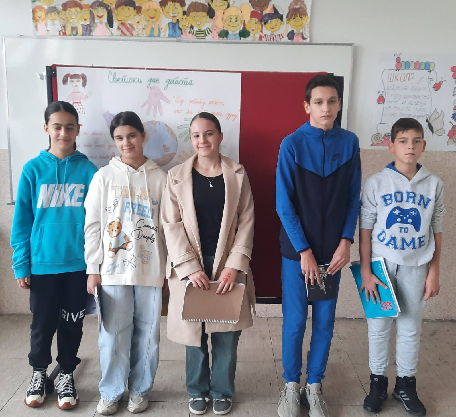 Четвртаци су нас подсетили на важност обележавања Дечје недеље, неговање другарства, љубави, уважавања уз што више смеха и радости. Не можемо да се не подсетимо дечјих права, а да не истакнемо да свако право прати обавеза о чему су нам говорили трећаци уз илустрацију на хамеру. Другаци су нас оплеменили стиховима о деци и њиховим маштаријама, другарству и игри. Прваци су цртежима показали како они замишљају лепши свет својом маштом.