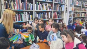 Посетили смо и Библиотеку општине Лучани. Разговарали смо колико је важно да читамо, али и да чувамо књиге. Још једном смо се подсетили дечијих права, али и важности игре и другарства. Ученици су се учланили у библиотеку и добили пригодне поклоне. Дан смо засладили бомбонама и топлим гостопримством које нас је дочекало.