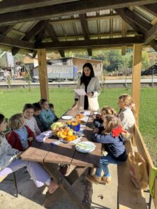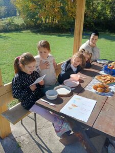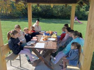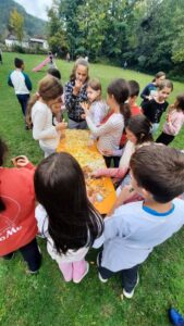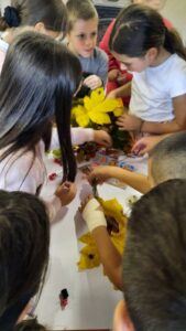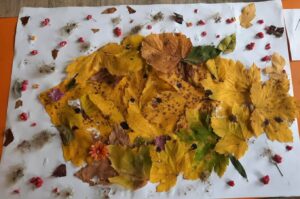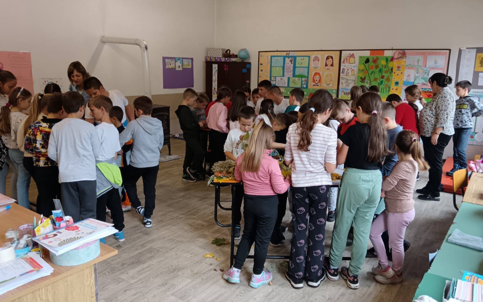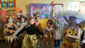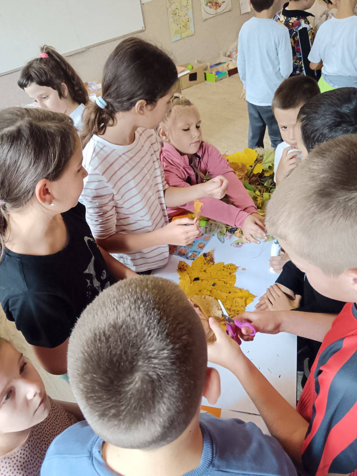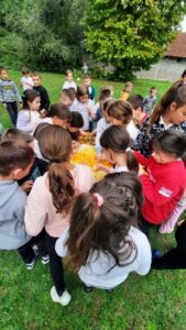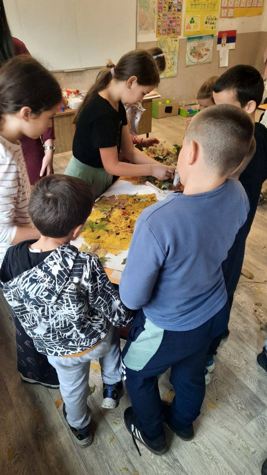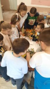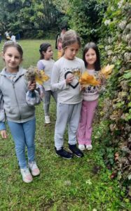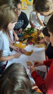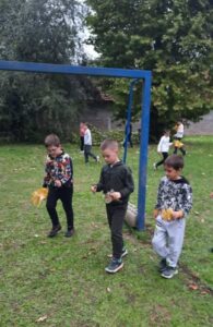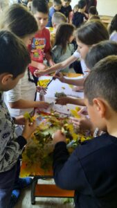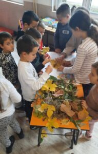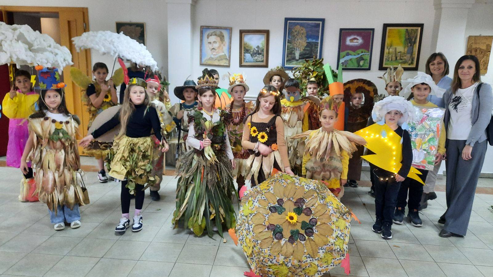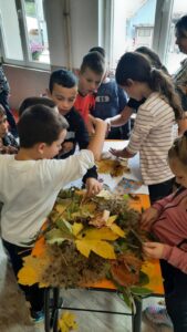 Вредни ученици су сакупљали јесење плодове, лишће, гранчице, цвеће и подељени у четири групе стварали права јесења уметничка дела. Од сакупљених плодова су правили јесење дрво, мачку, рибу и петла.