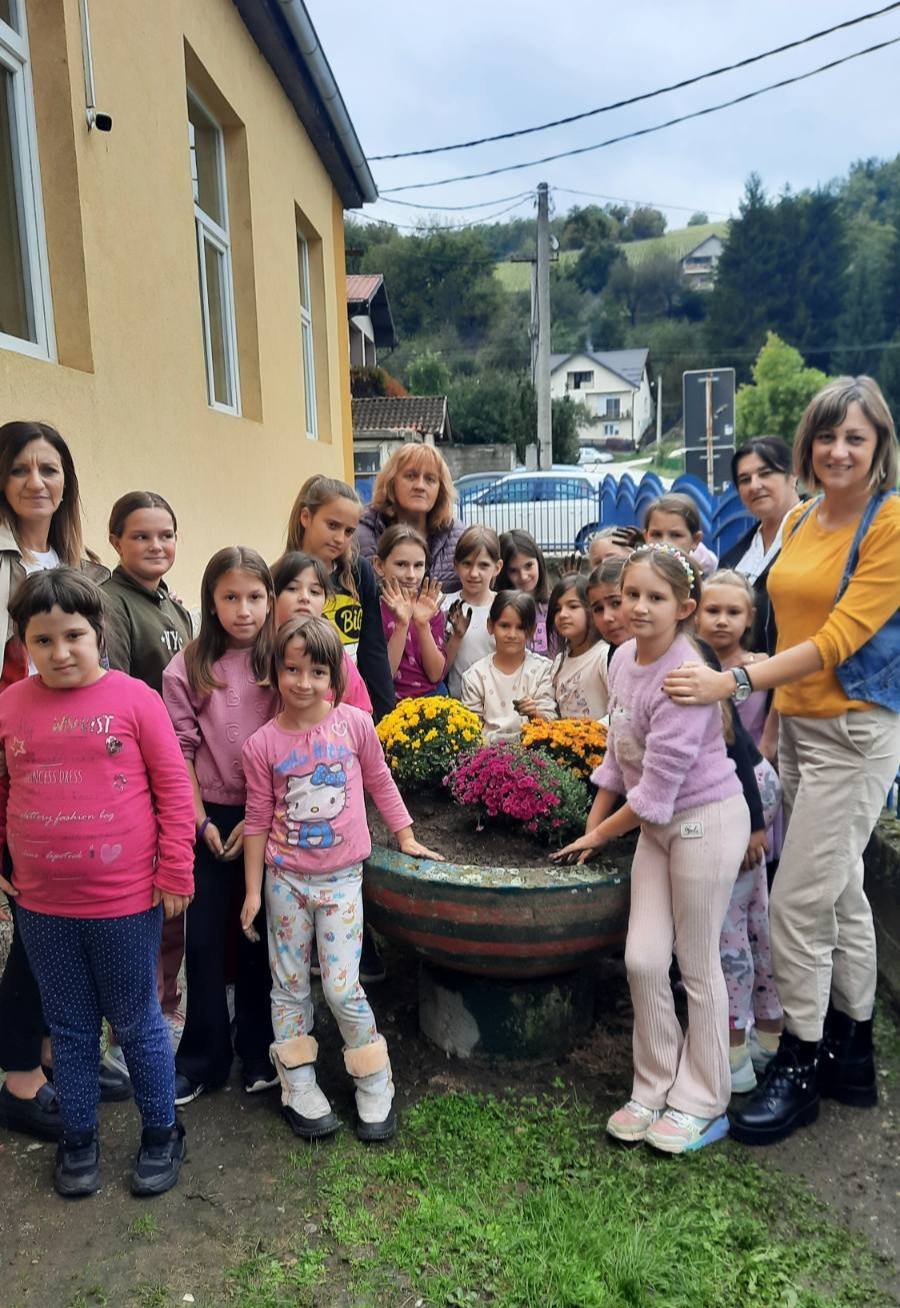 Да у потпуности оживимо јесен потрудиле су се наше ученице засадивши јесење цвеће на улазу у школу.